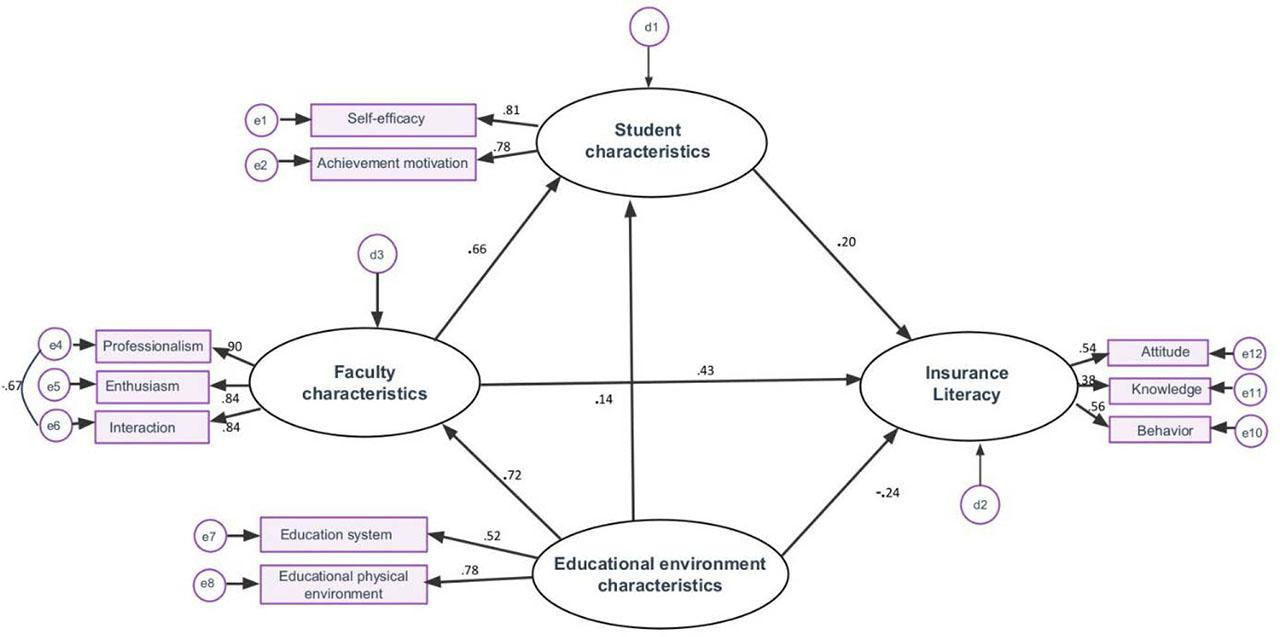 | Student characteristics → Insurance literacy | .196 | .045 | .000 | .000 | .196 | .045 |