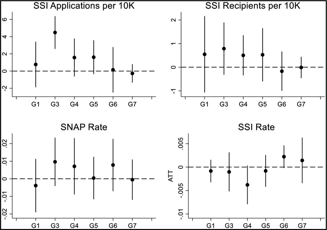 | SSI applications per 10K | SSI recipients per 10K | SNAP rate | SSI rate | SNAP rate - difficulty | SNAP rate - low income | SSI rate - difficulty | SSI rate - low income | |