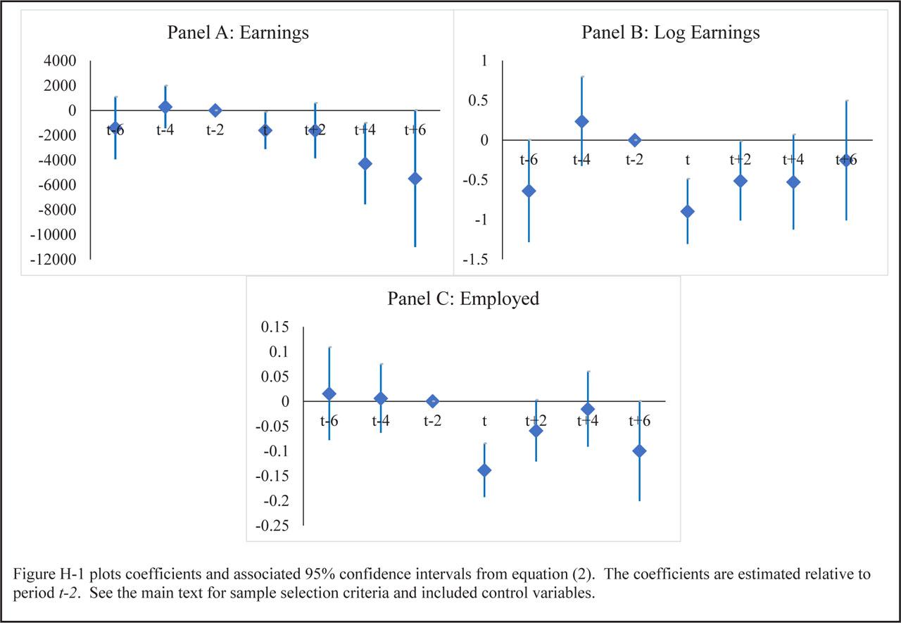 | Panel D: Displaced Workers Present between t–2 and t+2 | |||