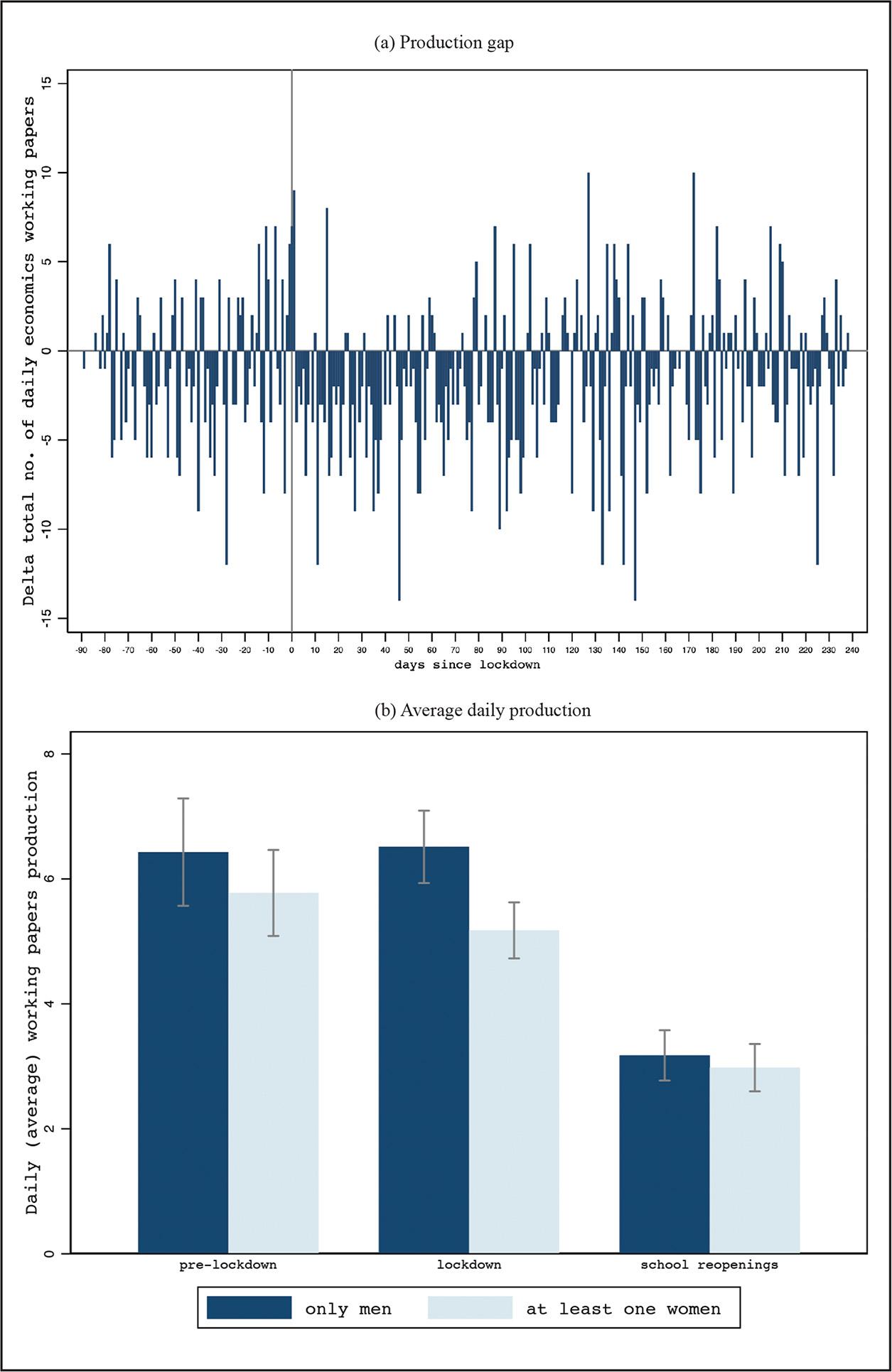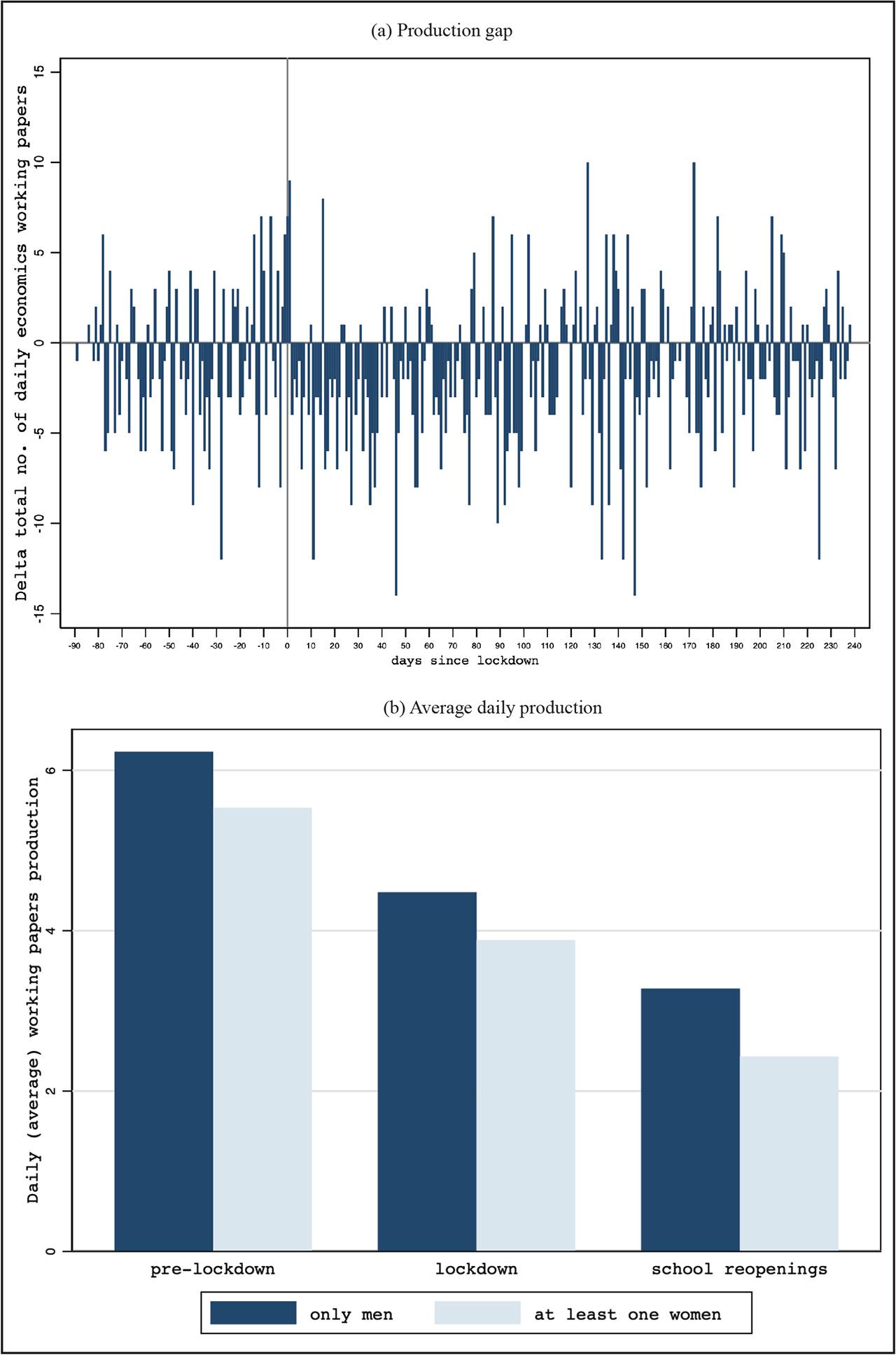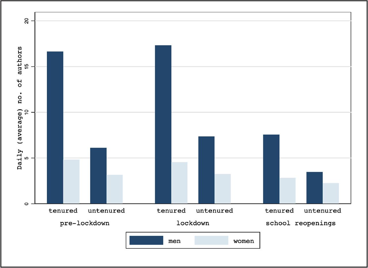 Impact of lockdown and school re-openings on gender production by tenure