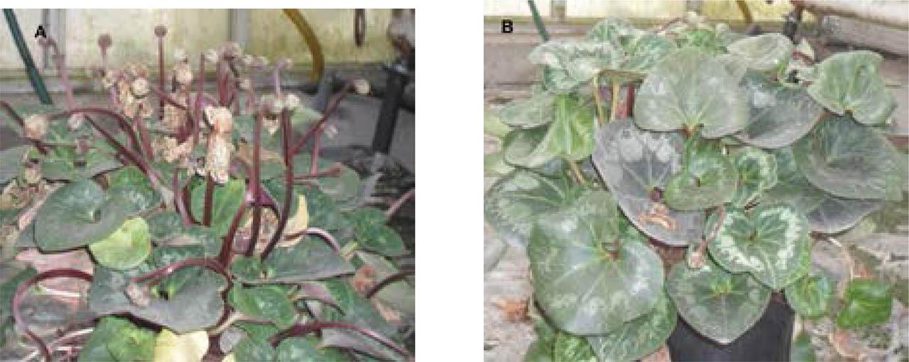 The investigations were conducted at a horticultural farm in Zdziechowice (to the south-east of Poznań; 52°18′15.5″N, 17°17′23.9″E) in a test greenhouse. The experimental material comprised of C. persicum ‘Halios’. Briefly, three week old seedlings were planted successively nine months before the commencement of experiments.