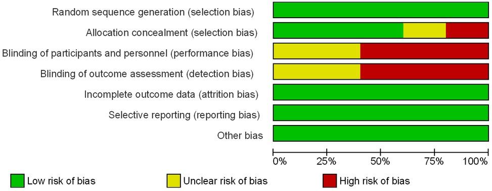 Risk of bias graph: review authors' judgements about each risk of bias item presented as percentages across all included studies.