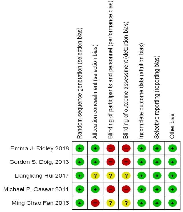 Two authors independently assessed the risk of bias of the included studies using the Cochrane ‘Risk of Bias’ tool [14]. The risk of bias was assessed for each of the domains as low, high, or unclear; any disagreement was settled by discussion, and if not resolved, then the third author was consulted.