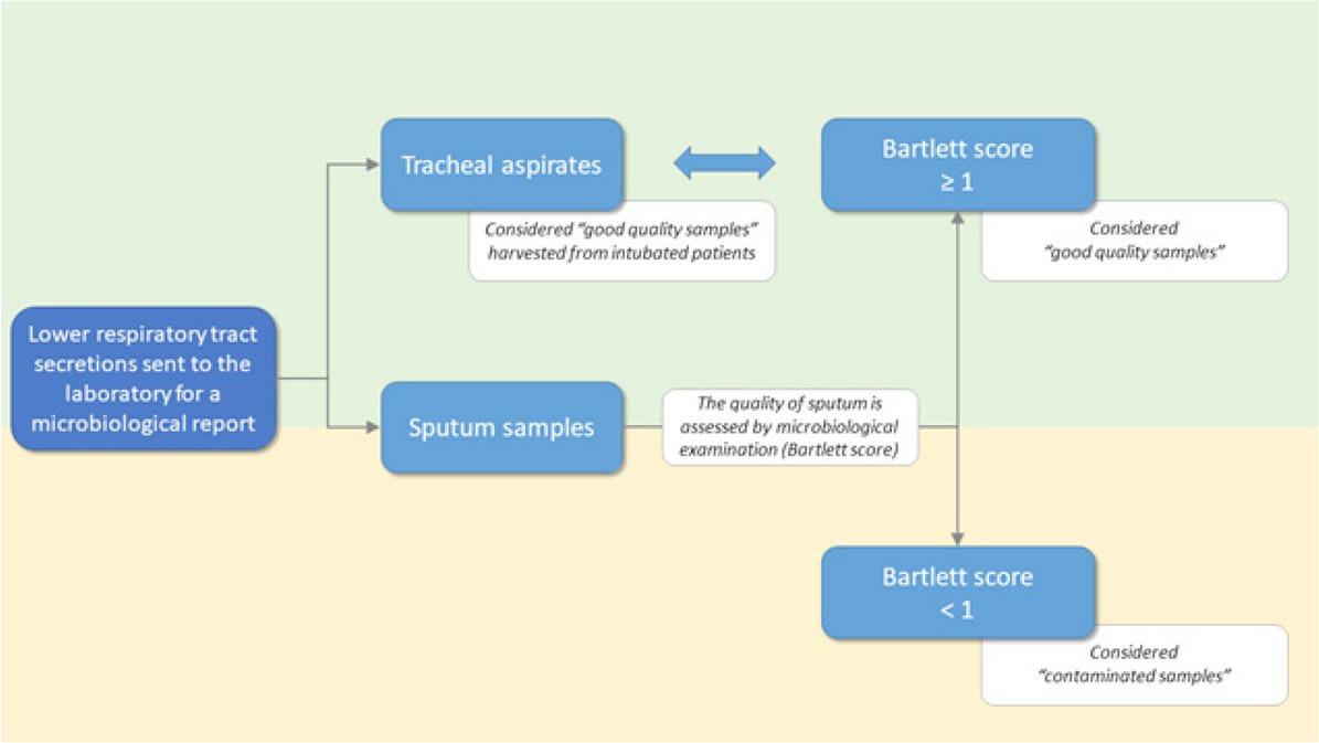 Multiple criteria can be used in a laboratory for judging the quality of sputum samples [21, 22, 23], with different reproducibility rates [2]. An accurate and reliable microbiological examination is more than desirable. Although initially it was thought that sputum Gram stain could not provide enough information in the absence of culturing the sample, this might not be entirely true. Gram staining can play a key role in diagnosing pneumonia, and the Bartlett score can predict true lower respiratory tract infections. However, regarding whether samples are contaminated or not, there is only a moderate agreement when the results of Gram stain and sputum sample-culturing are compared [24].