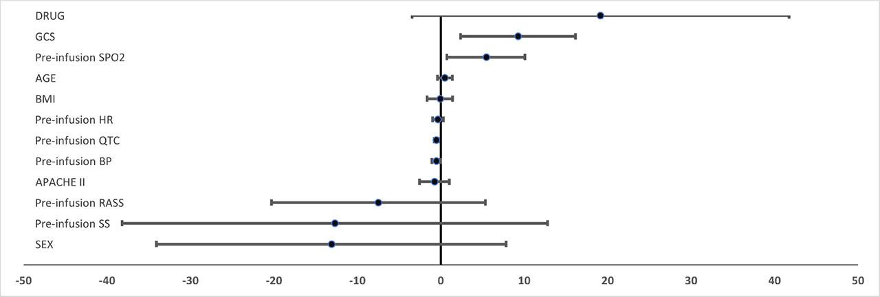 APACHE: Acute Physiology and Chronic Health Evaluation, BMI: Body mass index, bpm: Beats per minute, GCS: Glasgow Coma Score, HR: Heart rate, QTc: Corrected QT, RASS: Richmond Agitation-Sedation Scale, SBP: Systolic blood pressure, SD: Standard deviation, SpO2: Pulse oximeter oxygen saturation, SS: Sedation scale