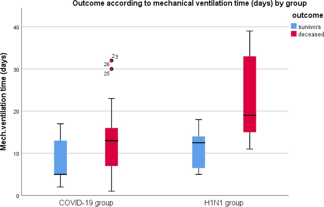Demographic research by Sasson and Tang indicates no statistical significance between patients with COVID-19 and H1N1 (from 2019); mortality was equal in both groups of patients [21,25]. Our results show a statistically significant difference in mortality between the two groups on invasive mechanical ventilation. COVID-19 ARDS patients had a worse outcome.