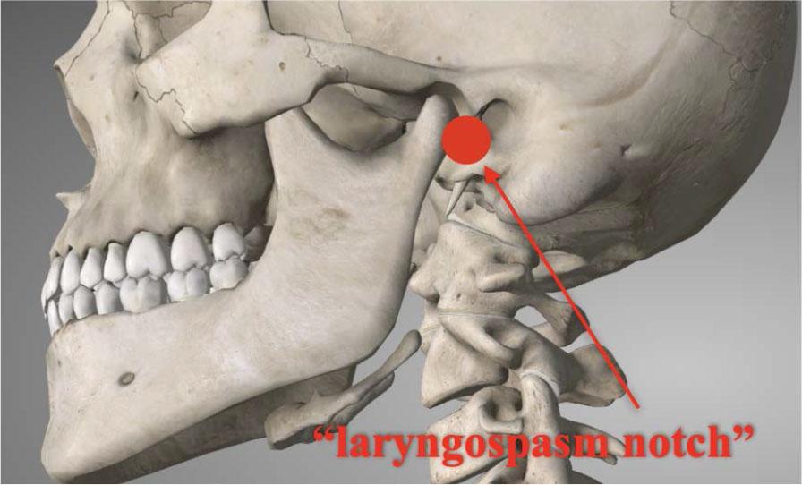 Another intervention, the “Larson maneuver,” is a well-established technique for managing laryngo-spasm. It involves applying firm bilateral pressure on the “laryngospasm notch” (Figure 1) while performing a jaw thrust [5]. Considering the parallels between laryngospasm and choking, we propose that this maneuver, proven effective in practice, could also be beneficial for managing choking. Notably, it is simple, accessible, and unique in that it can even be performed by the patient on themselves when choking occurs.