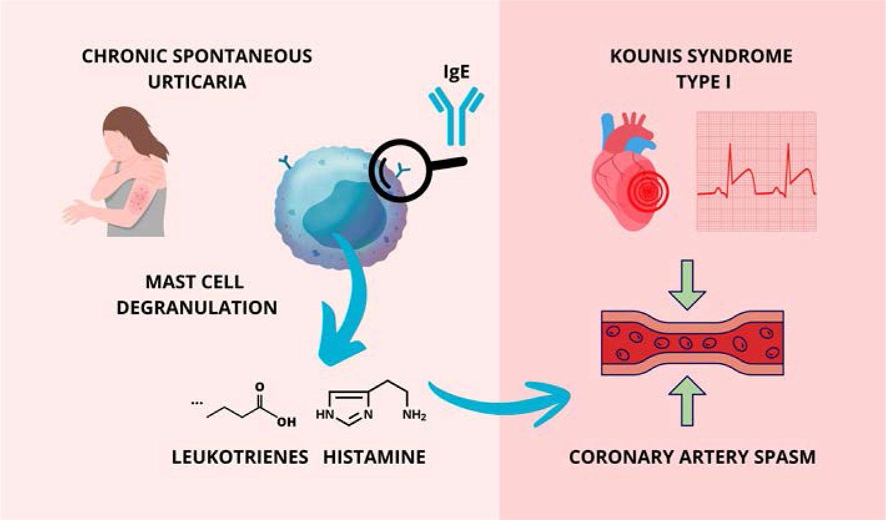 | Biomarkers | Troponin rise, serum anti-high affinity IgE receptor antibody test positive | Troponin rise, elevated tryptase during attacks |