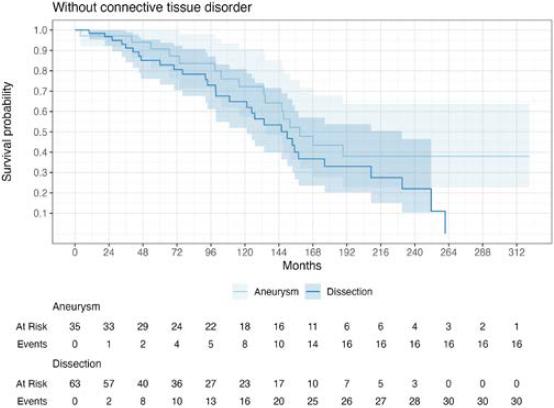 Kaplan–Meier analysis of survival of patients with TAFA and without CTD (aortic aneurysm, dissection)