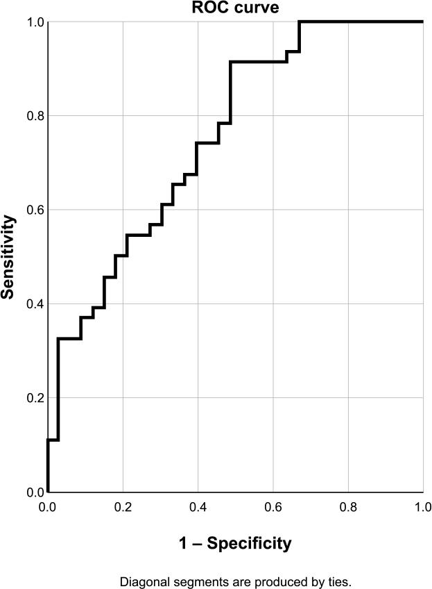 ROC curve for PAS to predict FFR < 0.8. Sensibility 60.0%, specificity 80.2%, accuracy 71.5%.