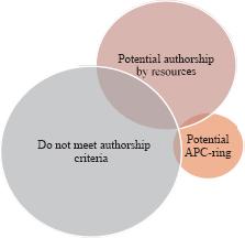 | Affiliation type | Potential APC ring | Potential authorship by resources | Not meet authorship criteria |