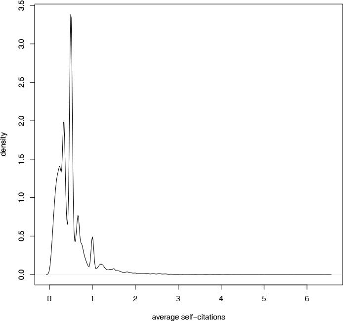 Authors’ average self-citation from ACiA″: density distribution.
