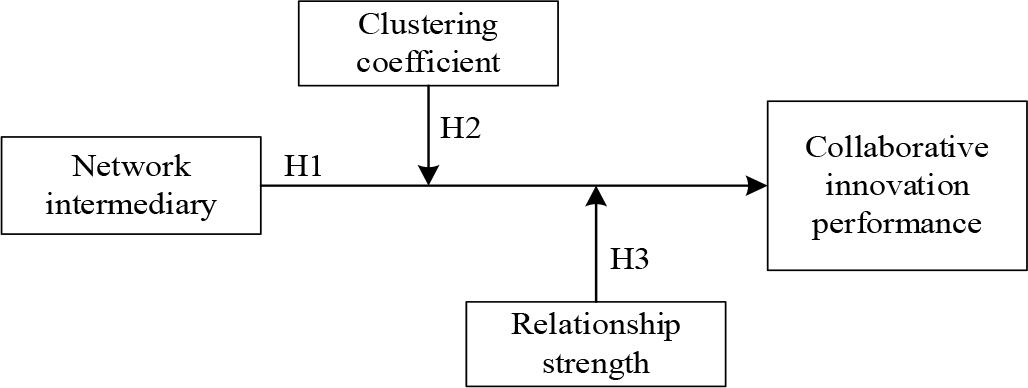 This study investigates how network intermediaries influence collaborative innovation performance among Chinese listed companies. Specifically, this research seeks to elucidate the mechanisms through which intermediaries facilitate or hinder innovation processes within collaborative networks. Understanding these dynamics is crucial for enterprises striving to optimize their innovation strategies amid increasing competition and resource constraints. This study builds upon existing literature by introducing a theoretical model that not only considers the role of network intermediaries but also incorporates the moderating effects of the network clustering coefficient and relationship strength. By exploring these factors, this research aims to clarify the complexities of network interactions and their implications for innovation outcomes. Therefore, the following section introduces the relevant literature background and the hypotheses of this research. We also present the data, variables, and research methods employed. Through empirical investigation and discussion of the results based on the collected data, we then provide managerial implications derived from the examination of our hypotheses.