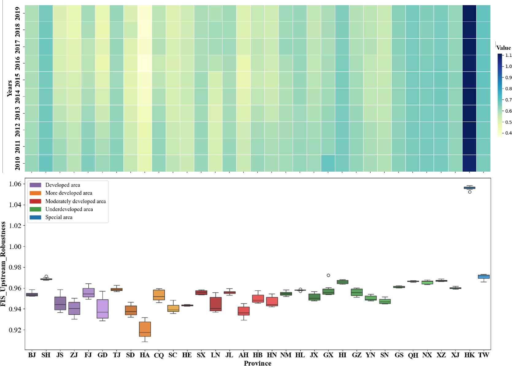 Downstream Value Chain Robustness of FIS by Province in China.