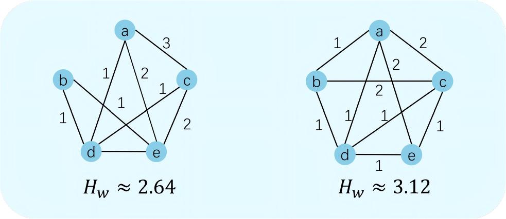 Then, we can calculate the edge-weighted entropy based on the probability corresponding to the edge weight between each pair of nodes in the network, thereby obtaining a quantitative measure of the information distribution recorded in the m rankings. The edge-weighted entropy Hw is defined as: