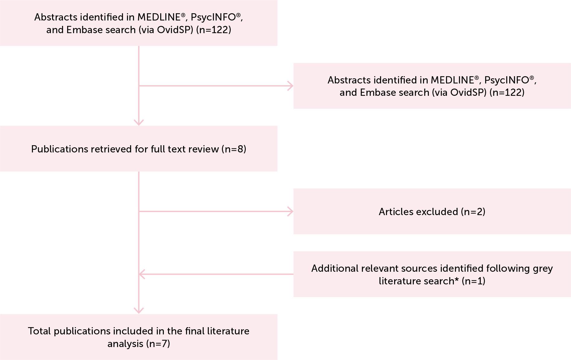 Databases searched included Embase 1996 to 2020 Week 50, MEDLINE® 1946 to 16 December 2020, and PsycINFO® 2002 to December Week 1 2020.