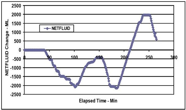 Resusitation NET FLUID vs. elapsed time.