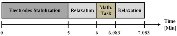 All the participants were requested to sit quietly in a chair during the experiments in a soundproof room. The room temperature was maintained (22–23 °C), as recommended by Boucsein [1]. After a general introduction about the purpose of the experiment, the electrodes for the aim of EDA recordings were appropriately placed on one of the subjects’ hand. Before recording, 5 min were allowed for EDA electrodes stabilization after electrode application on the participants’ hands, and then NS.EDRs (NS.SCRs, NS.SPRs, and NS.SSRs) were simultaneously recorded at two different resting periods for 2 minutes (1 minute pre and 1 minute post a specific stimulus) as illustrated in Figure 1. In order to produce S.EDRs between the two resting periods, the participants were asked to answer a mathematical task (subtract seventeen successively from a starting number of 100) during 5 seconds. The purpose of using the external stimulus was only to separate the two resting periods and to show the pattern of NS.EDRs in pre and post of S.EDRs; therefore, all the recorded S.EDRs were ignored. Any speaking was not allowed for participants, and they were asked to relax and to avoid bodily movement, during the whole session of EDA recordings.