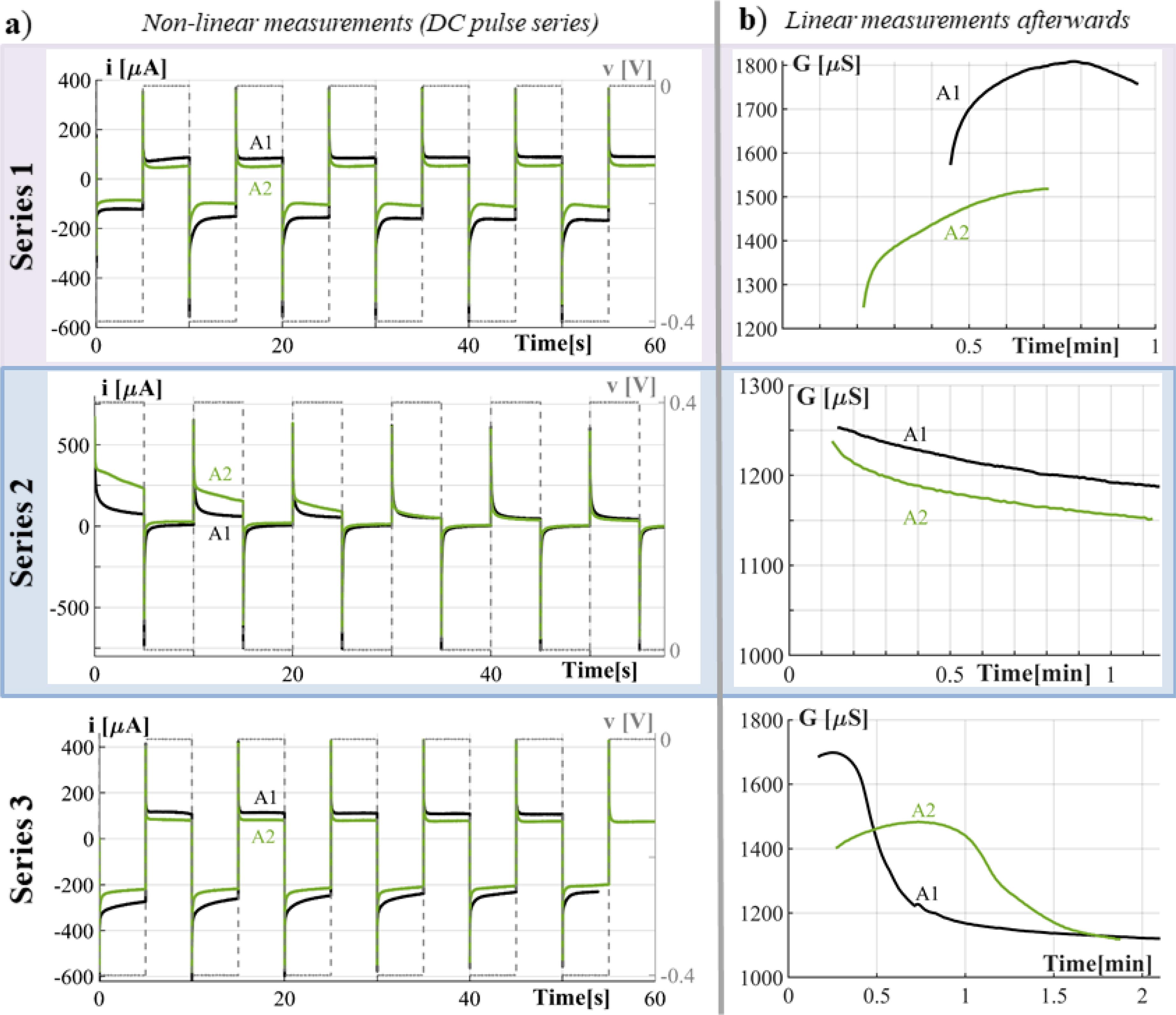 ![Methods, a) Applied voltage stimuli that were used for the recordings with silver/silver chloride electrodes in sodium chloride solution. The recordings with 0.4 V and 0.8 V amplitude were done ones and also with an additional frequency of 0.05 Hz. b) Schematic of the used measurement instrumentation. This three-electrode configuration [13], with “CC” as the current-carrying electrode and “Ref” as the reference electrode enables monopolar recordings under the measurement (“M”) electrode. c) Test setup with the silver/silver chloride electrodes. The test setup with the stainless steel and aluminum electrodes was equivalent. The M electrode was placed on one side of the plastic bottle, the CC and the Ref electrodes were placed on the opposite side. The distance between both sides was approximately 6 cm. The wires of the electrodes were taped against the walls of the plastic bottle to keep the electrodes more or less in position.](https://sciendo-parsed.s3.eu-central-1.amazonaws.com/64721e3e215d2f6c89dbc8fe/j_joeb-2019-0017_fig_001.jpg?X-Amz-Algorithm=AWS4-HMAC-SHA256&X-Amz-Content-Sha256=UNSIGNED-PAYLOAD&X-Amz-Credential=ASIA6AP2G7AKAAKESO7A%2F20251215%2Feu-central-1%2Fs3%2Faws4_request&X-Amz-Date=20251215T201515Z&X-Amz-Expires=3600&X-Amz-Security-Token=IQoJb3JpZ2luX2VjEIj%2F%2F%2F%2F%2F%2F%2F%2F%2F%2FwEaDGV1LWNlbnRyYWwtMSJGMEQCIQDrrYk87Yl6dV9MRVvcIRHHAyidffXG38XXkVCvWqKPpAIfe5CE9tgb%2BWVGRDIZAIp4BjgZ6lIxz7wRgU4yDohPDyq8BQhREAIaDDk2MzEzNDI4OTk0MCIMqS%2BjqW9teG7cRlv%2FKpkFiUhVd2CX8WXQg%2Bk%2ByvCYSq6sQfnNdxAAos2P31YbWeycfYAoHxfPgAZ14qZekvWOLQft%2F1Mxl2%2BG46ztxaM2utPs7kVYDxKI%2Fw6wBxhzvedmast4igN7%2Fkyy2UkwSfRx7o2MH%2BXdLHk7SyQjk3e%2FPojdjNXZ%2FDyGhLGz%2BrGhKEHuNOTG6VT3pSgbmmdbDl5CNXPnMu%2B53dJpd3JXdjbHH%2FceDHg6CcHgfd%2FTH2RuieUlt0HN%2BLr4%2F4z%2BGcIvLHDpBKb14cc8jh0apfOJo7KrUpmB6HMTztgOx6qwVaQWCPSz4PKhrRjB%2BkQWp1R9dsK5mpAaa2Pa8PHTm4Zs7h5L9955lM7l81surIxBQzhudpbfDDXgkslEwmIrWws9YCh1hfWBNx7YtKHZgu899NgebbGD%2FF0bNOIiENryPJ8T85OW8tm9mERyLyk8dOJfp372q8154JHUoV%2Bv90mf88lwE%2BW2K1X3YXq7nsdGXG%2F%2FTh77dq2t5kgtU5zx%2BHh%2BxQ5gXk8arXzfunwhq8JkacMxzmp3p%2B%2BB%2BqDK%2BLUxhRpoV0K76ghNQ60vp%2BWQCQKIKfkWvIM9doxWPq6RS6Lbon%2FAfY50sWCTNUuk1U0%2FgFA9R7xW5gNMdgXLbYVrjKSRYs%2BuJ4uRoI2jW9QZw%2B93TmvK%2FZc293aIlMpIXtkaSEbGLIePquW4Rd5TsV0qDv7sgKnOX4nvbzks4j6o0%2BXWtDVER%2F%2FEkCFT0VFE9lV9io4DabZx8zORHI%2B51vEwA%2BejVOfieerFY0sg5tdy%2BsyiZqVBMVVC8DHtesgS0ZqsQ2K4A%2Bp8V%2F4A4J%2FlKvuE5VEoJ4DXDHTGpIUAohmeK8jdK1BRJQ31LIWCeF7vvKMNxNMDMWK009eDZMPVr64w%2FdSAygY6sgGX6EJck3JiBuRHLzPNkOgvOjLucoJBMGfj7yufUNbqTaszFyNzwFTPP28L3oxANAbejTErE0HLqMDA1DycRB8kspSKDLJwqqoCA43vFZOp%2FztHtjhPrJYq%2Fg5PsvtQt%2FSGGPCn7t0k8ZDwn2ZT88lAob146kyfhiH7SSapfhqyGN4Q%2Bpnzdy9Uz8DQfZziCla9wPSymRdWDHiUN1S%2Bk9Q7ctTmIqDi9HyDG869wU%2FxlEKQ&X-Amz-Signature=b004706e31269ae156c813de271e316a122dbc6dece70b0f238833ef28ddeac1&X-Amz-SignedHeaders=host&x-amz-checksum-mode=ENABLED&x-id=GetObject)