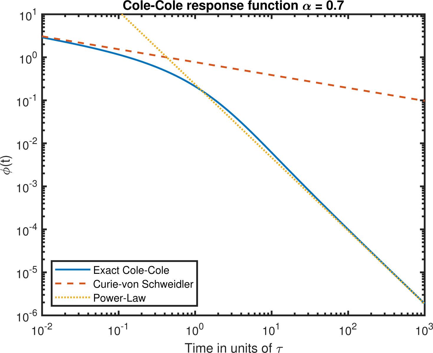 In recent years, there has been a development in understanding of the responses of the Cole-Cole model found in a direct way. These results depend on the Mittag-Leffler function, a generalization of the exponential which is named after Gösta Mittag-Leffler (1846–1927). This function is rightly called the “queen function of fractional calculus” [3] showing the close link between non-integer derivatives and the Cole-Cole model. The asymptotes of the Mittag-Leffler function are just as important as the function itself and is what will be emphasized here.