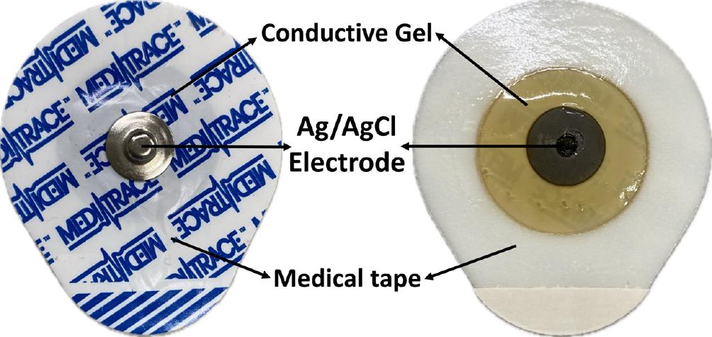 It is crucial to minimize the influence of contact impedance in real-world applications by maintaining a minimal contact impedance between the skin and electrodes. Additionally, consistent contact with the skin is necessary to reduce the variation in contact impedance when making gestures. Medically graded electrodes, known for their steady performance, were used to obtain stable and effective impedance data, which significantly improved wear comfort. This study did not investigate the impact of electrode size on impedance retrieval. The selected commercial medical electrodes consisted of an Ag/AgCl electrode encased in conductive gel, as illustrated in Figure 4. An adhesive material covers the gel, securing the electrodes and preventing them from falling during physical activity, thereby ensuring the stability of the measurement outcomes.