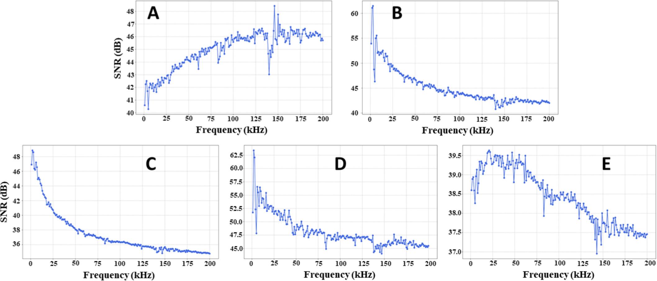 Examining the signal-to-noise ratio (SNR) in the acquired impedance data for various gestures has yielded valuable insights that affect the development and effiicacy of the model. The SNR, which represents the signal quality in the presence of potential noise, was calculated for the participants, electrode placements, and conditions. While all gestures surpassed the 40 dB SNR benchmark, indicating high-quality signals, variations across gestures, particularly for “C” and “E,” imply challenges in subsequent modeling.