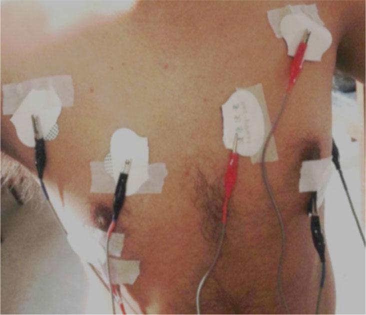 Electrode placement for measurement at the lower left lung from the back.