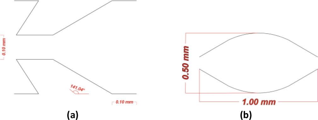 The expansion units’ effect is crucial. They improve fluid dynamics for soft cell processing and facilitate a more effortless transfer of oocytes through the chip. They also optimize the shear force upon the oocyte to remove the COCs and avoid destroying the oocytes. The expansion units will guarantee that all faces of the oocytes are exposed to the jagged surfaces. Figure 2 (b) describes the dimensions of the expansion units. The maximum height (thickness) is 0.5 mm, and the maximum width is 1.00 mm. The chip has a constant depth of 0.1 mm.