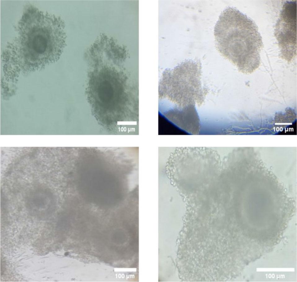 The ovaries of female slaughtered buffalo are obtained from the Dachlout abattoir in Dayrout, Assiut Governorate, which are then transported to the Veterinary Medicine department at Assiut University to undergo washing and cleaning procedures to facilitate the extraction of oocytes. The process is essential as it involves the extraction of oocytes from the ovaries while maintaining integrity. Subsequently, the oocytes are placed in Tissue Culture Medium 199 (TCM 199) (BIO-CHEM, Belgium) and some other materials with specific concentrations for preservation and maturation, as described in Table 1. During the maturation process, oocytes in media were placed in small tubes within a CO2 incubator (N-BIOTEK Co, Korea) set at 38 degrees Celsius with 5% CO2 for a duration of 22 to 24 hours, preparing them for the subsequent denudation process. Figure 6 shows the oocytes after maturation (metaphase II) with the cumulus cells around them, which harden fertilization. Although the cumulus cells harden the fertilization, the COCs around the oocytes are vital because they regulate oocyte maturation and meiotic resumption [59]. It also creates metabolic cooperation between the COCs and the oocytes [60] and intercellular communication within the COC is crucial for oocyte development [61].