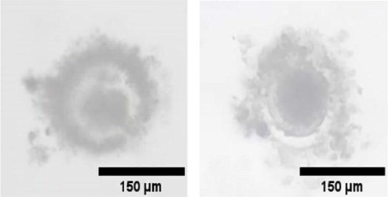 Figure 12 illustrates the incomplete denudated oocytes due to low wall shear stress or insufficient exposure to jagged surface units. As noted, cumulus corona cells remain around the oocytes, which can decrease the fertilization rate and harden the IVF of the ICSI process.