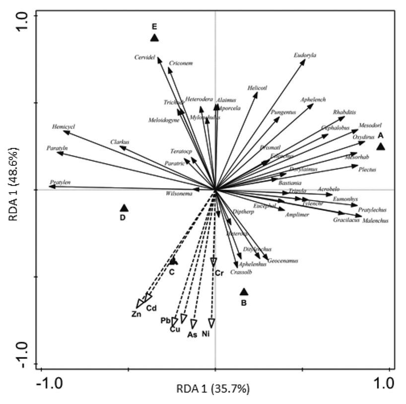 A abundance of nematode genera (mean ± SD) associated with alluvial meadows in the vicinity of the Příbram mine along the Litavka River_