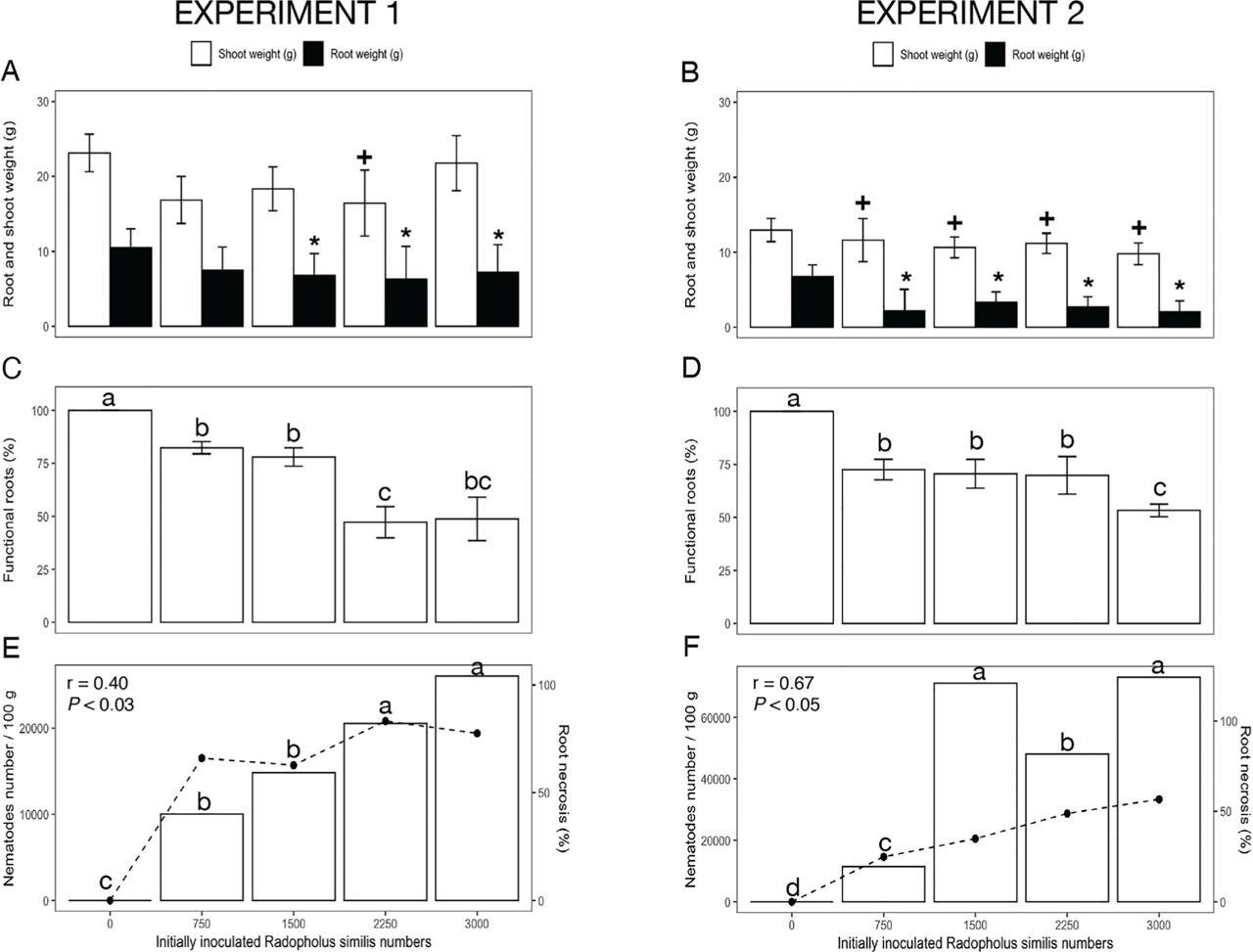 | EXP | Nematode population | Radopholus similis | Pratylenchus araucensis | Meloidogyne spp. | Concomitant nematode infestation | ||||||||||||