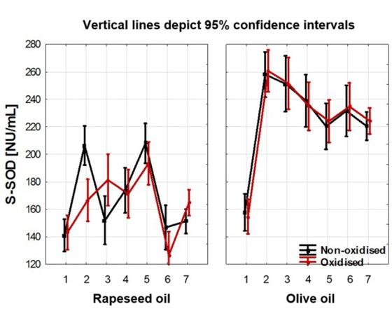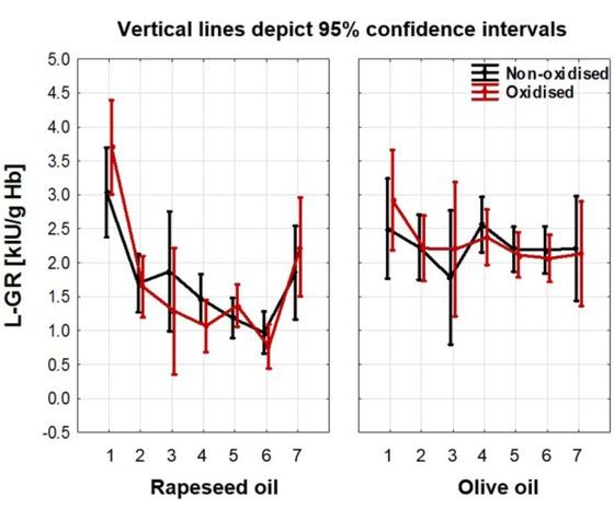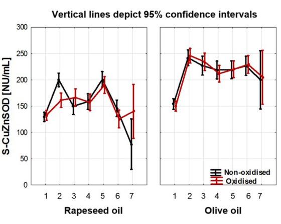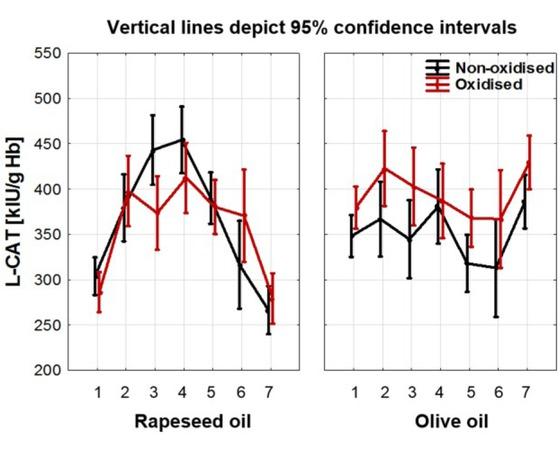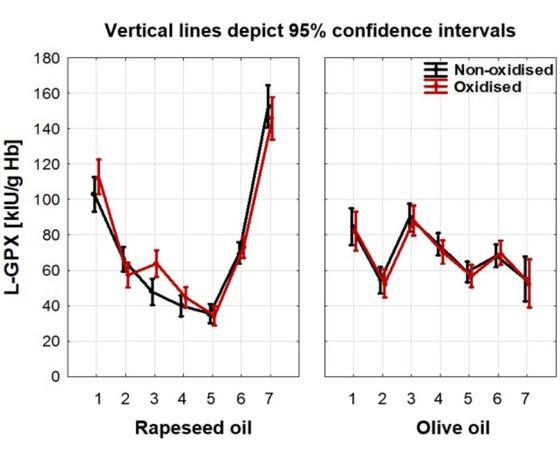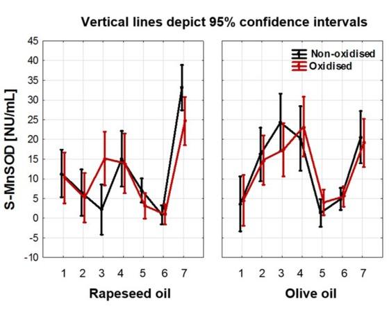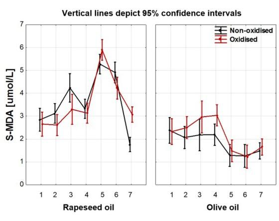| Parameter | Comparison between oxidised and non-oxidised oil | Δ7-1 Comparison between the last (seven months) and first (one month) values | ||||||