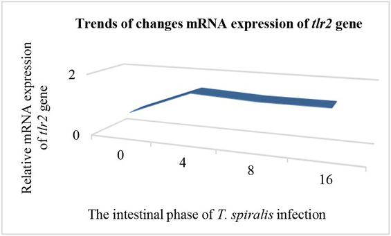 Trends of changes in mRNA expression of the tlr2 gene in the intestinal phase of T. spiralis infection