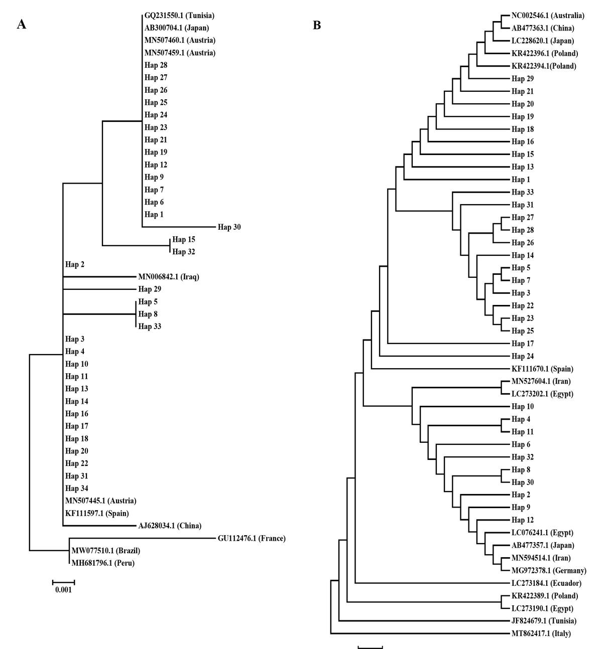 Molecular variation analysis based on cox1 and nad1 gene sequences