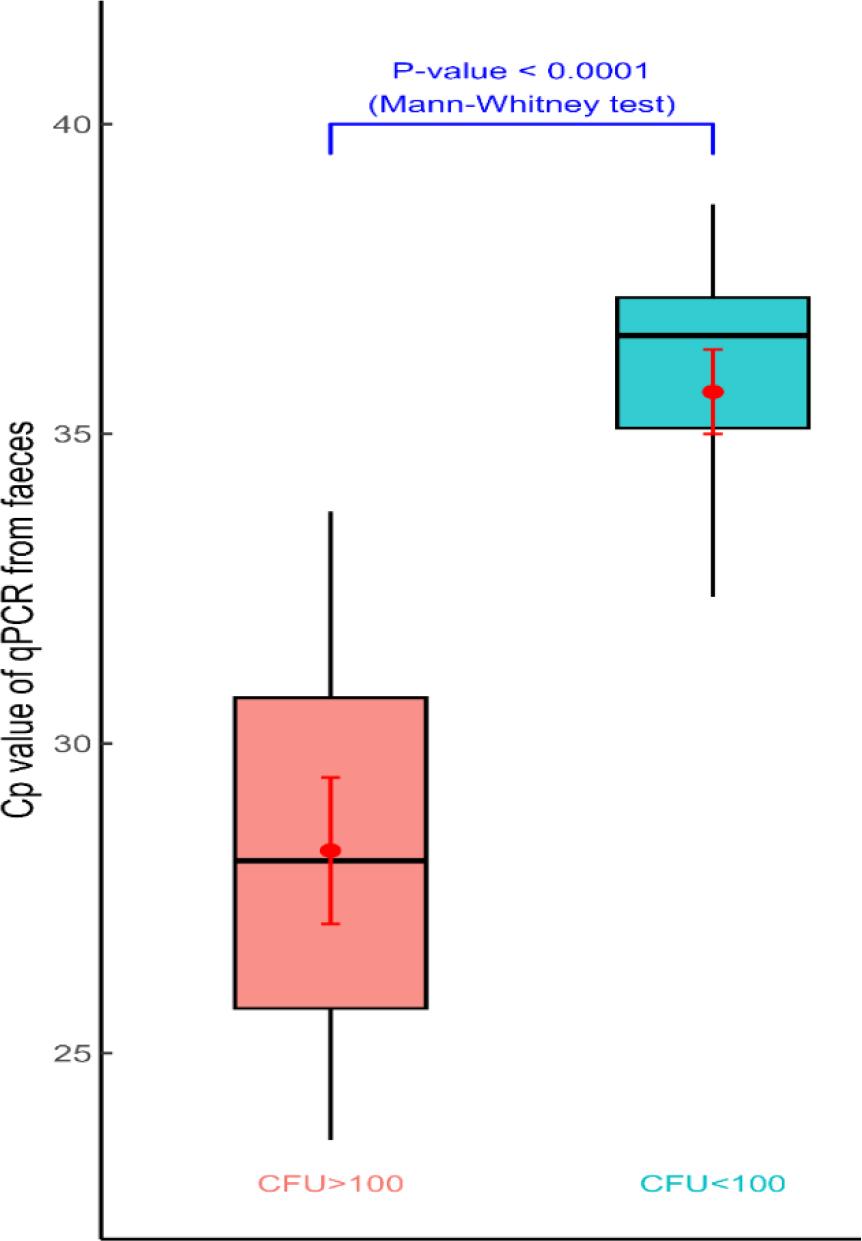 | CFU < 100 | CFU ≥ 100 | P-value | |