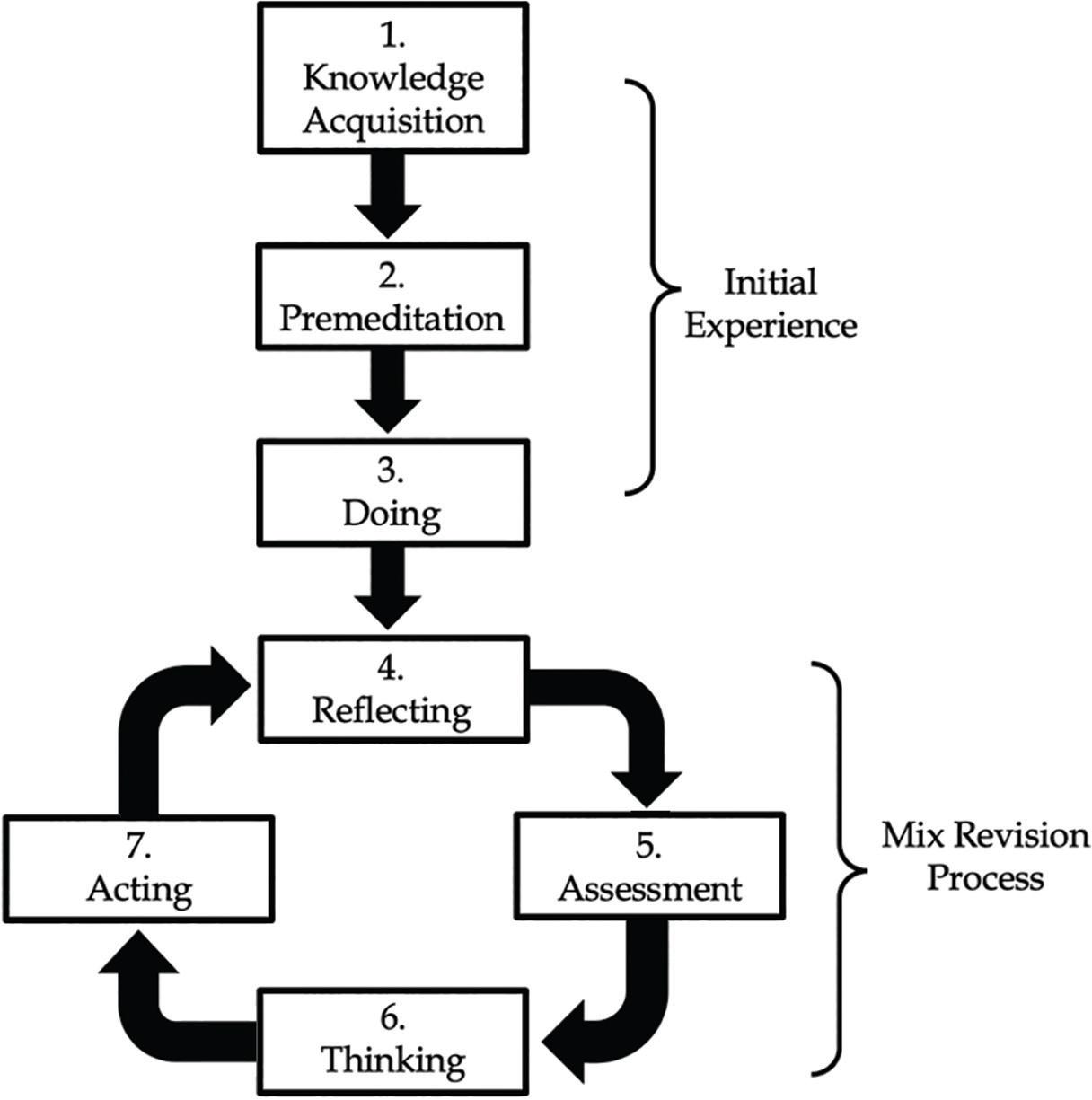 Finally, retrospective reflection includes three potential steps: initial student self-reflection, instructor feedback, and further student reflection on how they can improve their mixing in the future. Connecting reflection to deliberate practice, reflection through experiential learning is an in-depth method of performance analysis as described by Colvin.69 In summary, without various mechanisms for reflection, the learning potential of mixing exercises is significantly diminished.