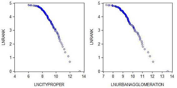 | Method: Least Squares | Ln (City proper) | Ln (Urban agglomeration) |