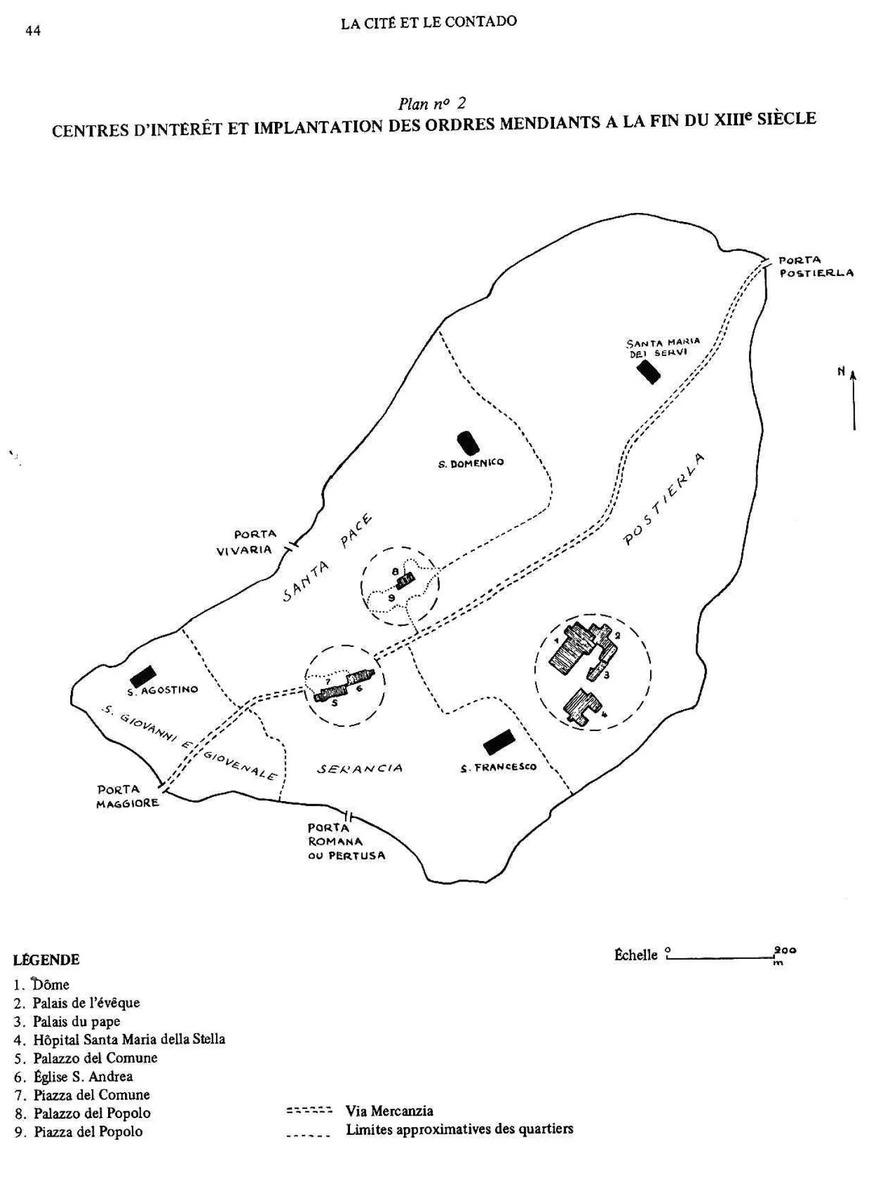 Orvieto districts. Source: Carpentier 1986. Orvieto at the end of the 13th century, its four districts, places of interest and mendicant churches