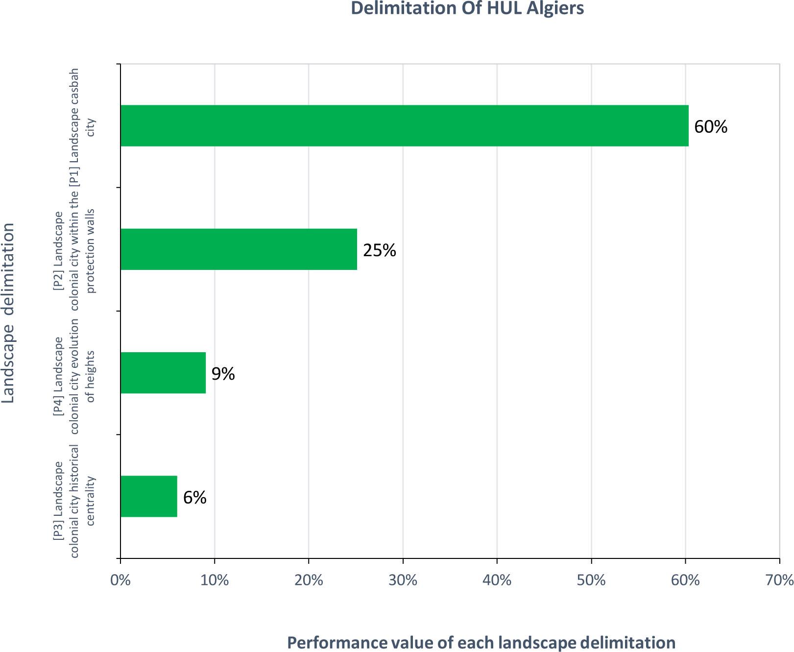 We therefore distinguish, in this overall evaluation, the process of using the units within the limits of the landscape. Delimiting the landscape is the means by which we preserve both the landscape and historic heritage in the context of the historic urban area of Algiers. It cannot be dissociated from the natural context, therefore, the criterion of the beauty of a site is fundamental to the definition of the overall value, as well as the criterion of the configuration of the relational system as a whole. Another finding in this paper was the degree of AHP response in the landscape assessment as a way of understanding values, and this is a testament to the effectiveness of the grouping value in characterizing the landscape configuration and then the process of its delimitation.