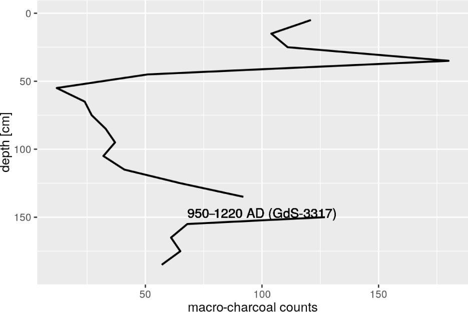 The lower level of enrichment in macro-charcoals was radiocarbon dated. The result was 950–1220 AD (93.5%, 1015–1150 AD – 68.2%, GdS-3317).