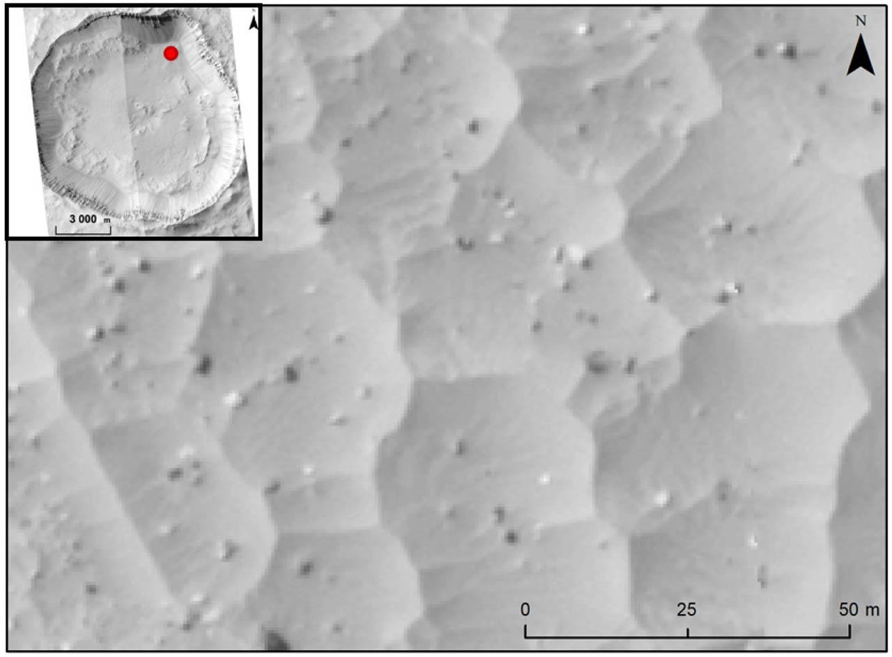 Both Martian talus slopes were analysed using photos of the same resolution, so it was possible to compare the sizes of the boulders more fully than those of the talus slopes on Earth.