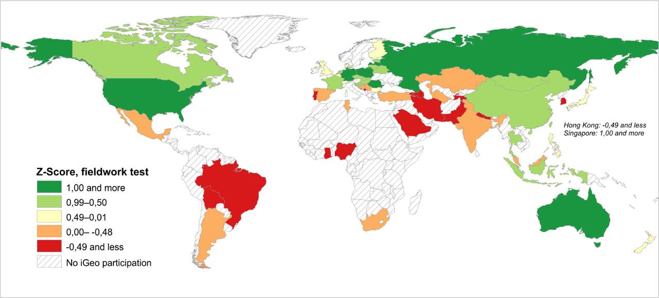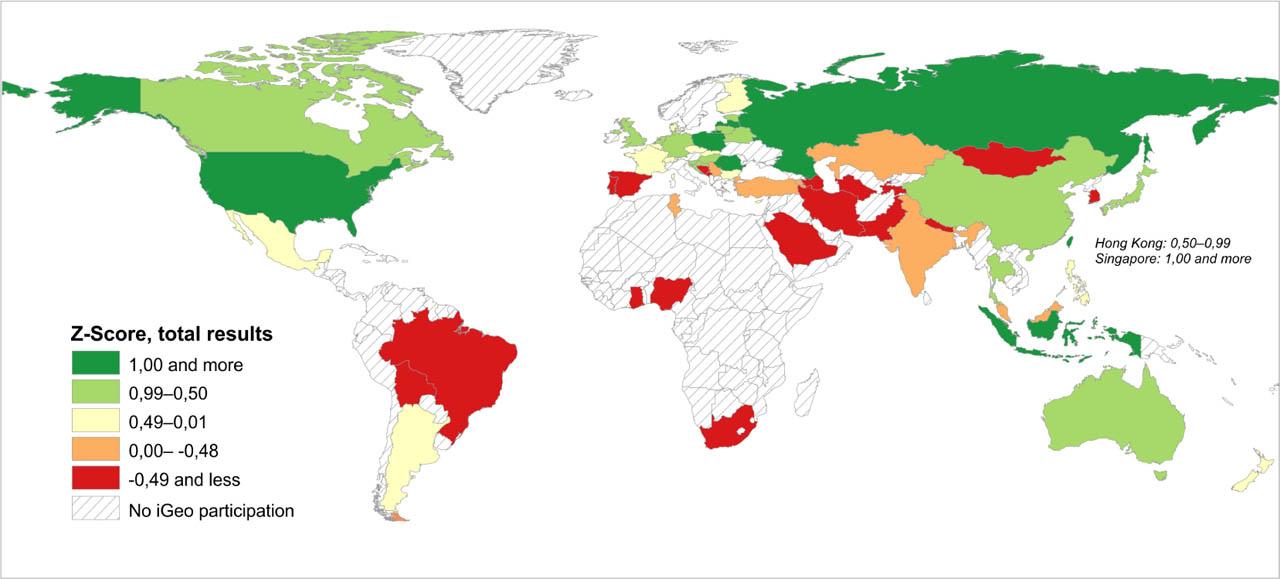 | Indicator | Pearson's product-moment coefficient with total iGeo results | r2 |