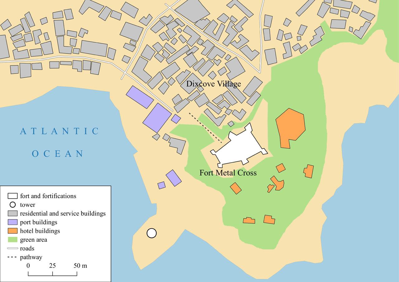 The location of Fort Metal Cross in Dixcove village