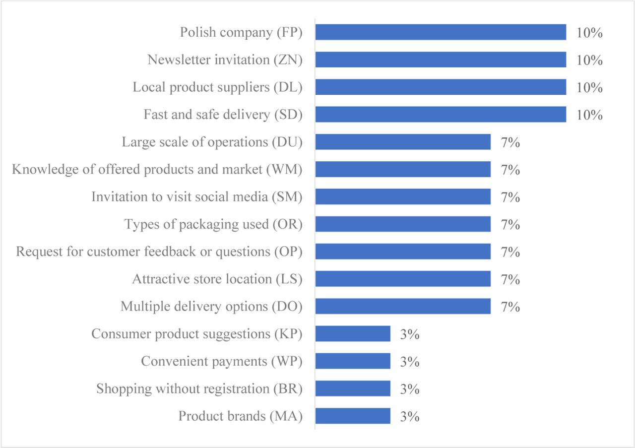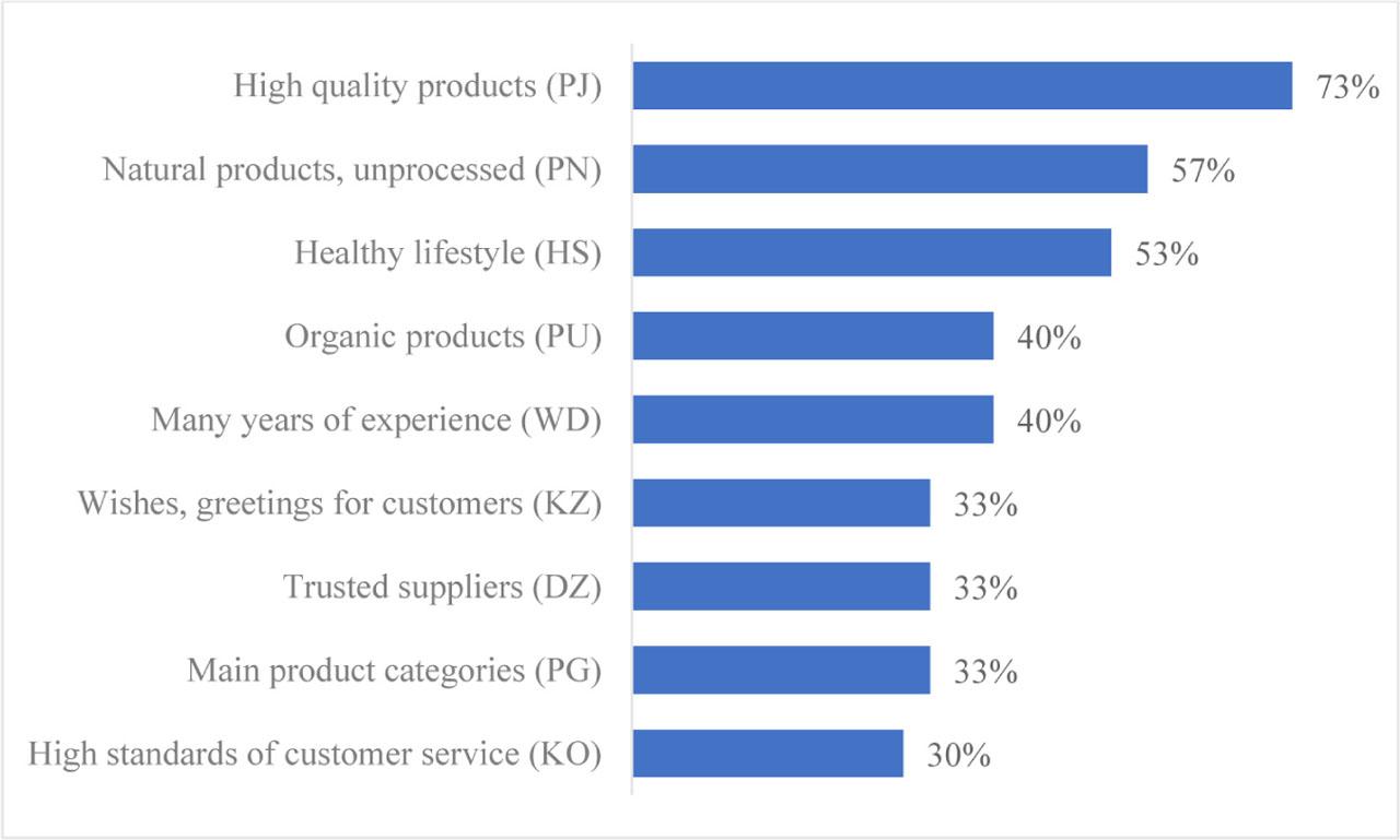 Frequency of occurrence of content variables on the ‘About Us’ pages of online stores
