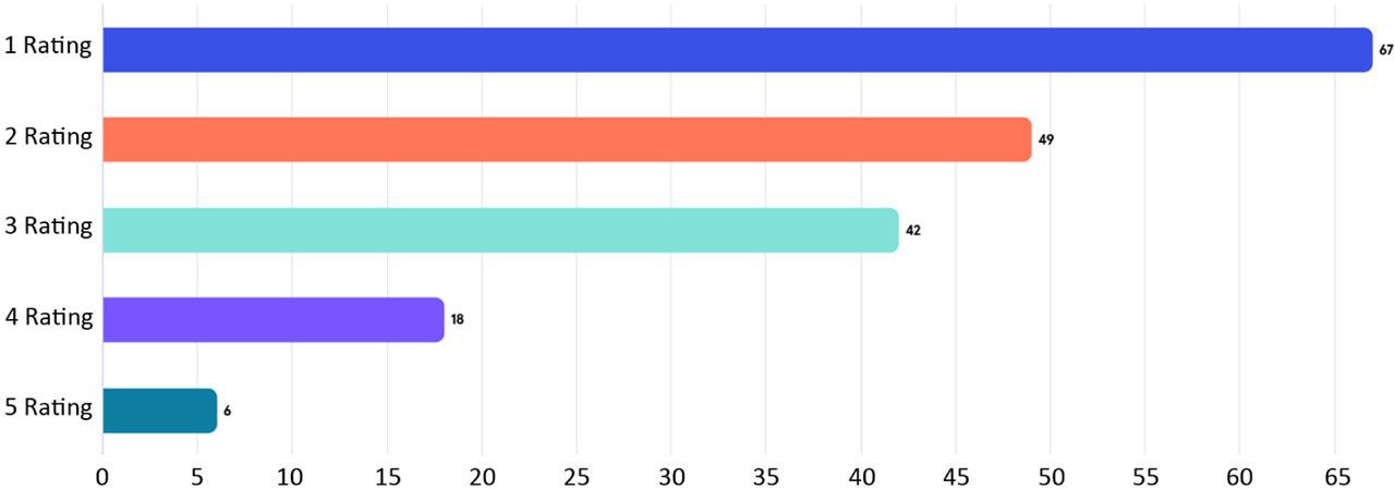 After analysing the answers obtained, the results in the group of women look similar. In total, 47.2% of women did not feel such limitations, and if they did, they mainly concerned trips abroad (12.4%), publishing scientific articles (11.2%) and engaging in the life of the Institute (7.9%). The vast majority of respondents believe that combining work with family life or caring responsibilities towards children or dependents in the family is not an obstacle to their professional work. This is shown in Figure 3 with the ratings, where a rating of 1 indicates that it is very difficult to reconcile work and family life to a very small extent and a rating of 5 is very high. Totally, 36.81% of people indicate a very low degree of handicaps, and 26.9% a low degree. The answers were similar for women: 34.6% of women indicated a very low degree and 30.8% indicated a low degree.