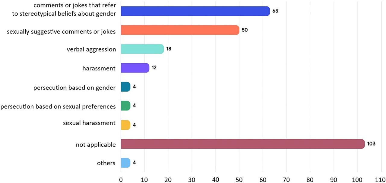 comments or jokes that refer to stereotypical beliefs about gender (24%),