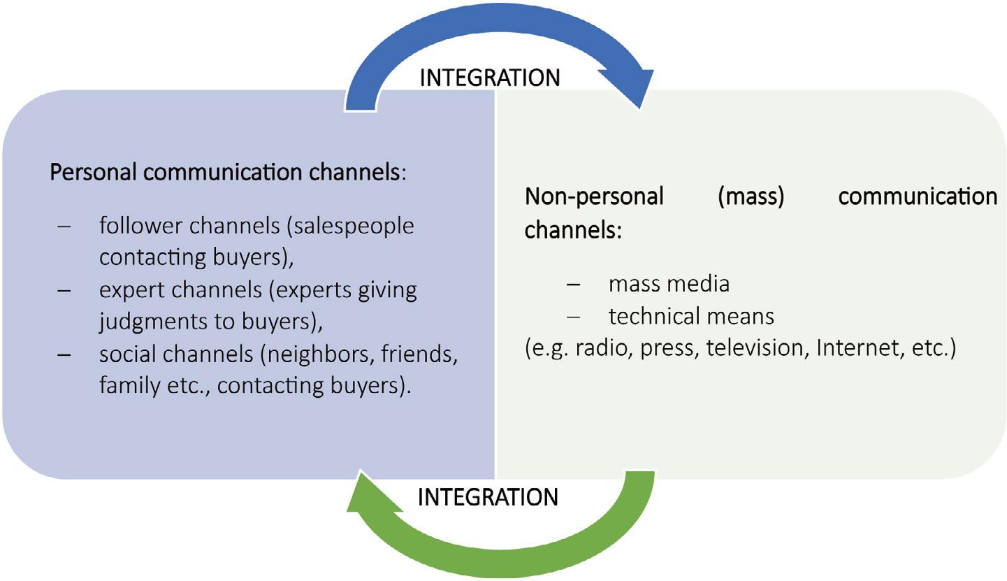 The crucial role of marketing communication is widely acknowledged in the contemporary management literature. Over the years, researchers have developed a variety of perspectives and interpretations of marketing communications within organizations. In the Polish marketing literature, the term “communication” is frequently used as a synonym for “promotion” (Michalski, 2017, p. 341; Czarnecki, 2011, p. 266; Wiktor, 2000, p. 286; Altkorn & Kramer, 1998, p. 117; Pilarczyk, 1996, p. 219; Żurawik & Żurawik, 1996, p. 318). Very few authors distinguish between these two terms, separating them into different categories (Kotler & Keller, 2017, p. 556; Kotler, 2004, p. 66; Woźniak, 2004 p. 151). Those who make such a distinction do so to highlight differences in scope between the two concepts. “Promotion” (Latin promevere, promotio) (Sztucki, 1998, p. 256) implies supporting, favoring, promoting, and stimulating, and so it refers to an activity that conveys a message to the market, using the “marketing tube” to influence the market and drive sales (Pabian, 2020, p. 133; Wiktor, 2001, p. 3–14). Promotion, as a component of communication, consists of messages transmitted by a corporation to raise awareness of its specific products and services, develop interest in them, and induce purchases (Kotler, 2004, p. 66).