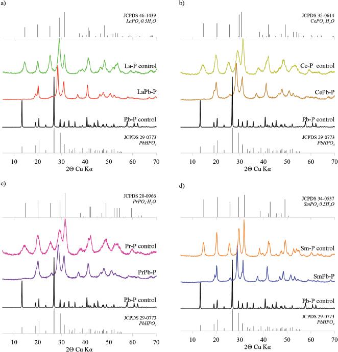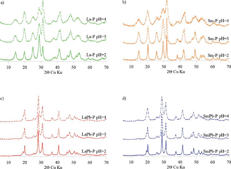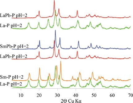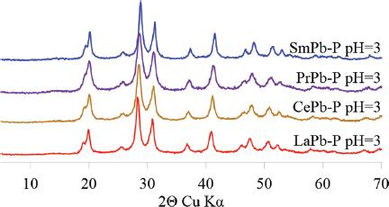 Calculated unit cell parameters of (LREE,Pb)-phosphates in orthorhombic system_