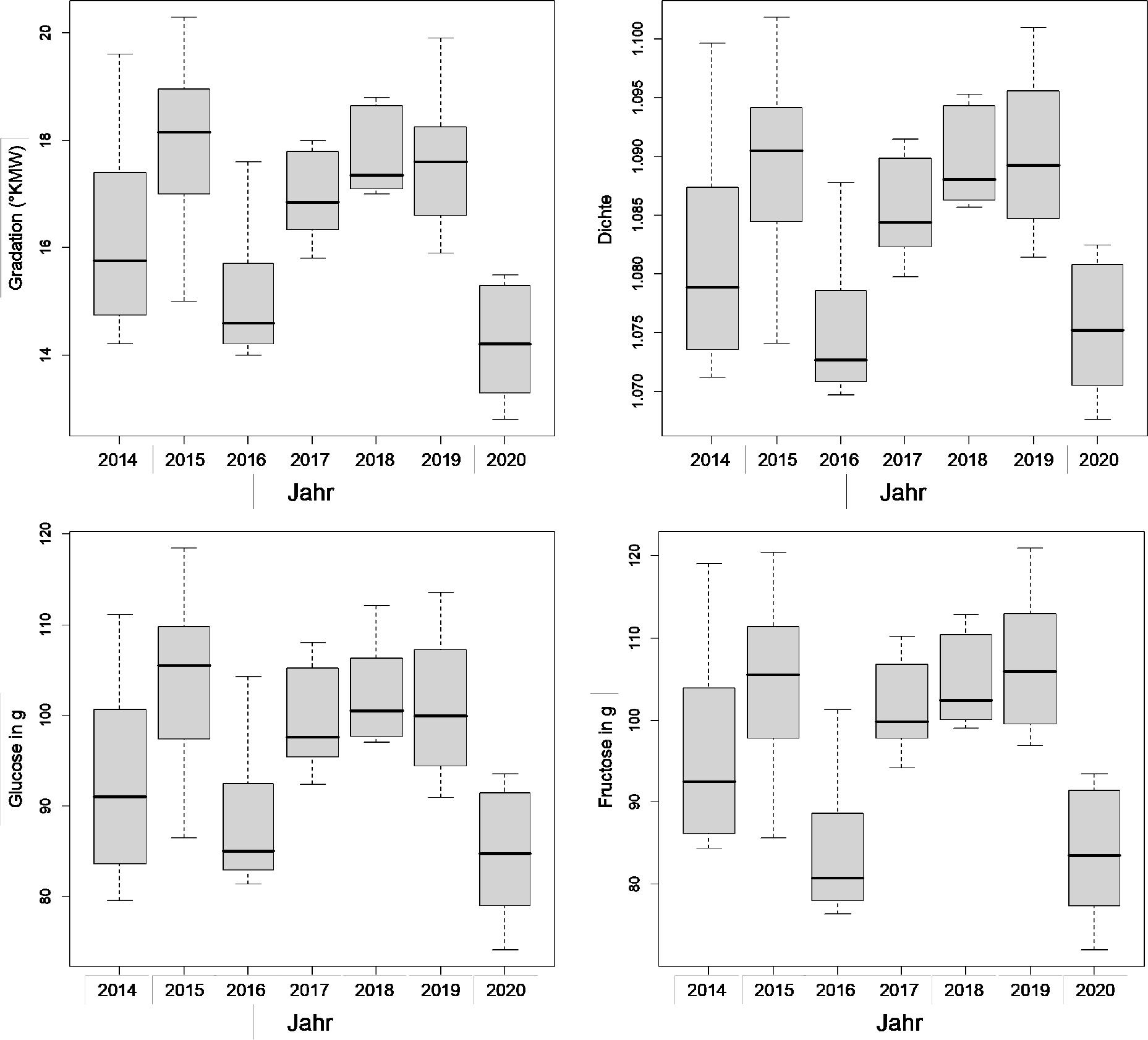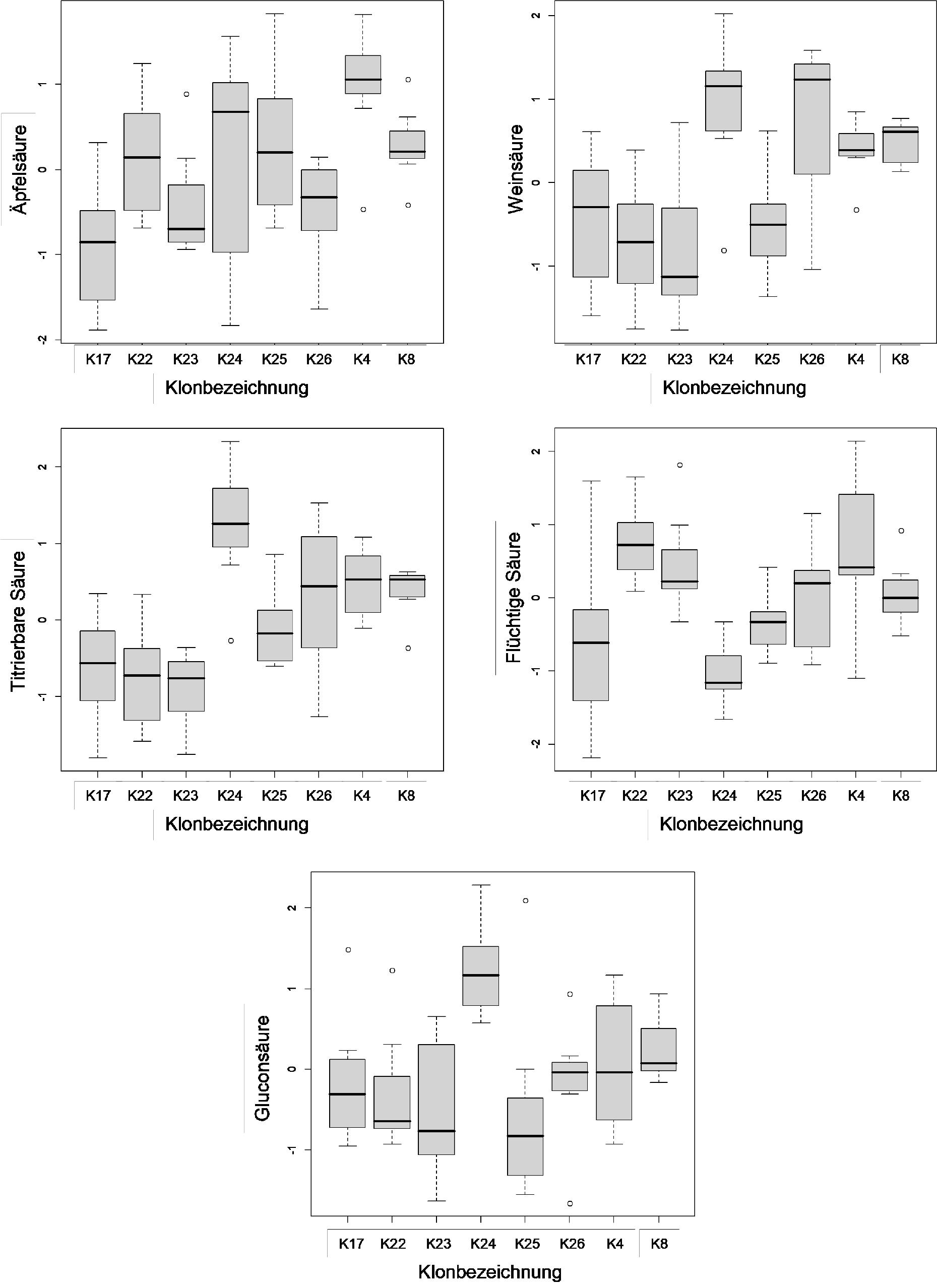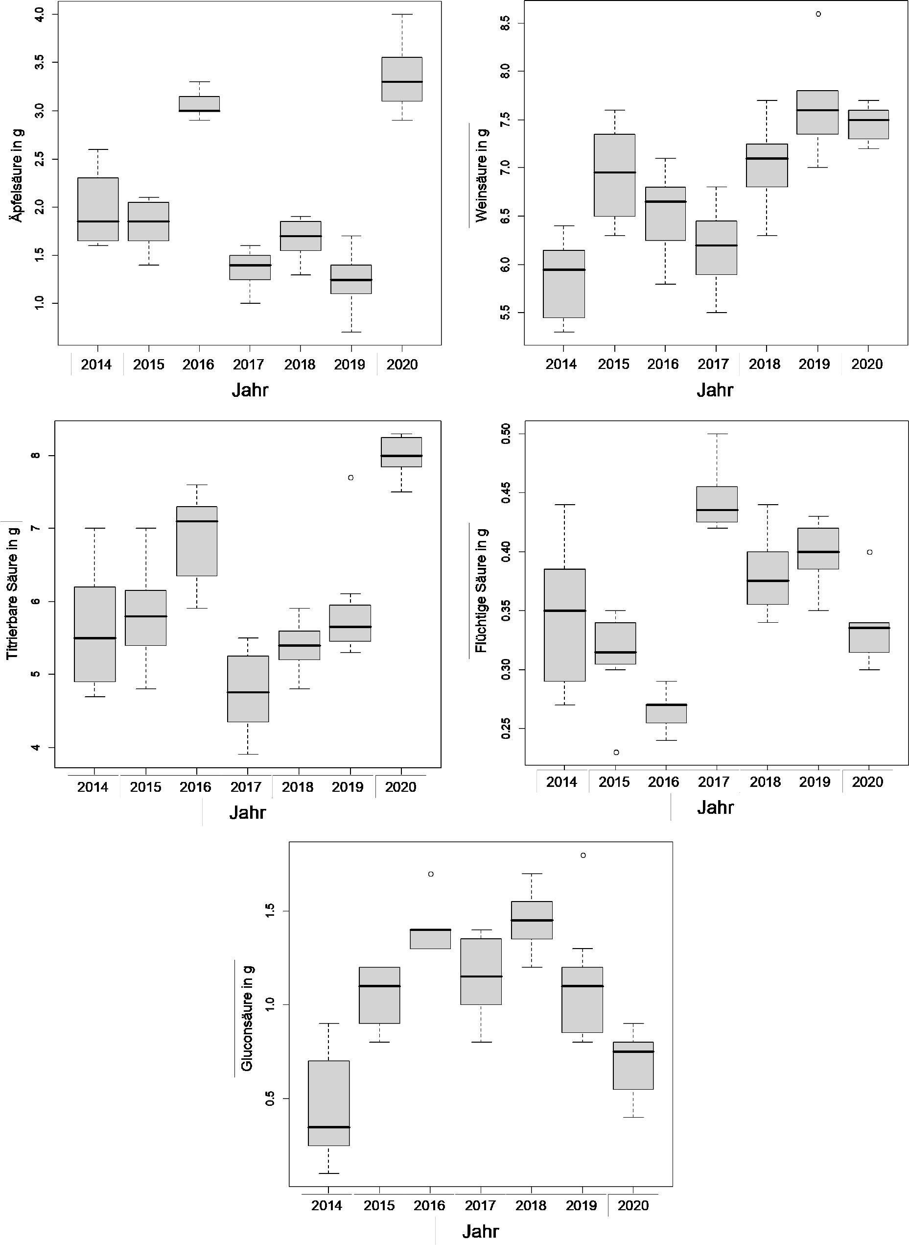 | Weinsäure | konstant hoch | konstant hoch | niedrig | niedrig | niedrig | hoch | niedrig | rel. hoch |